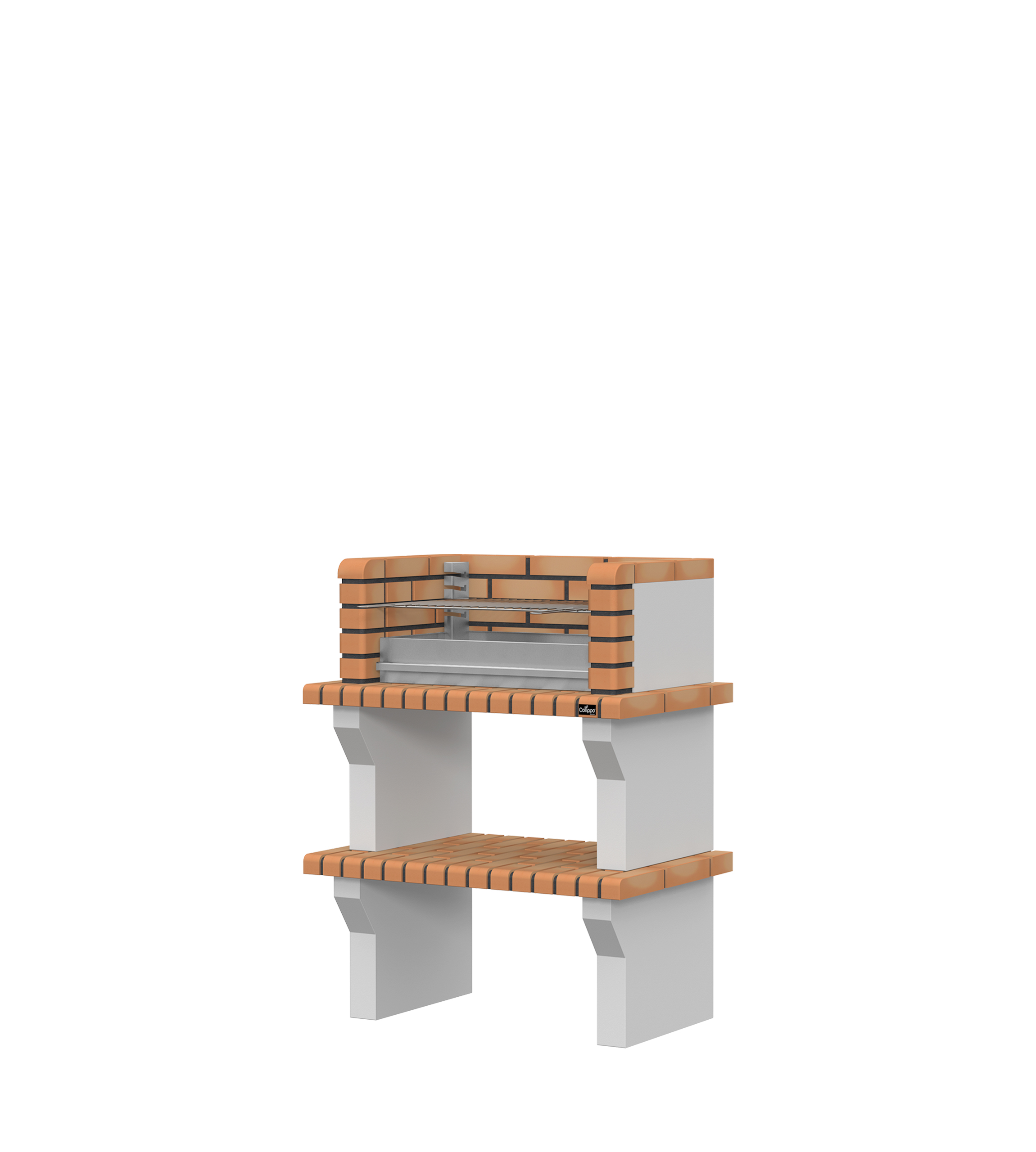 Micro betão cinzento texturado; zona de fogo em tijolo e cimento refractário
