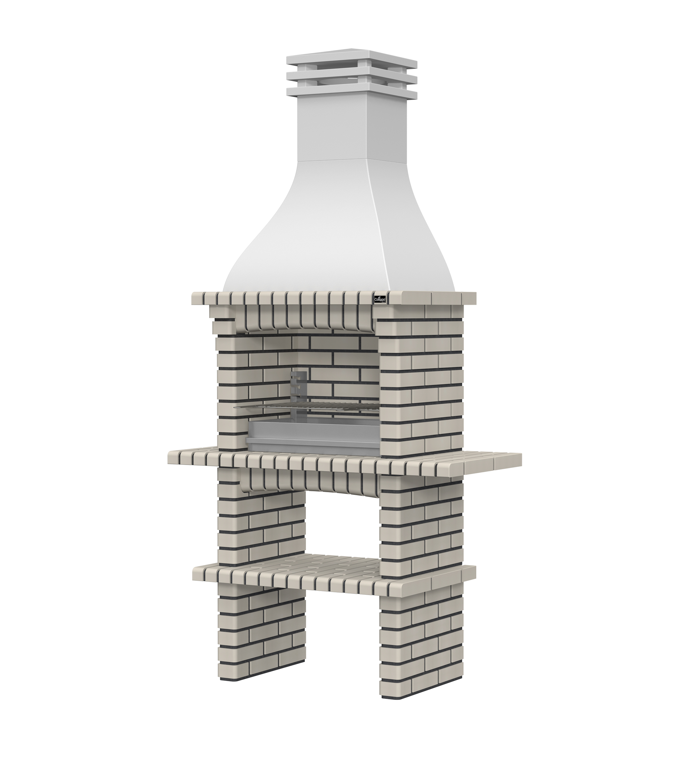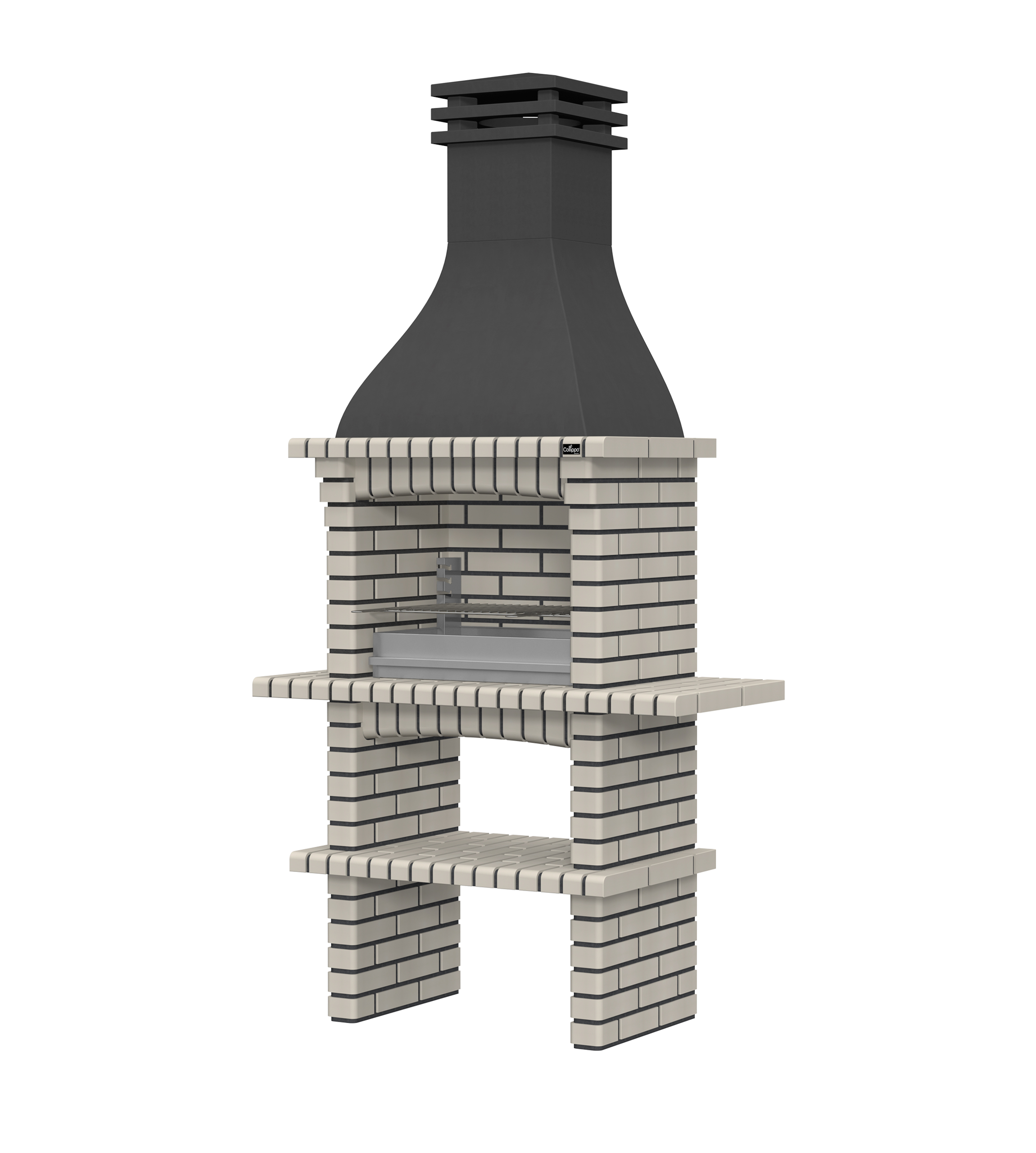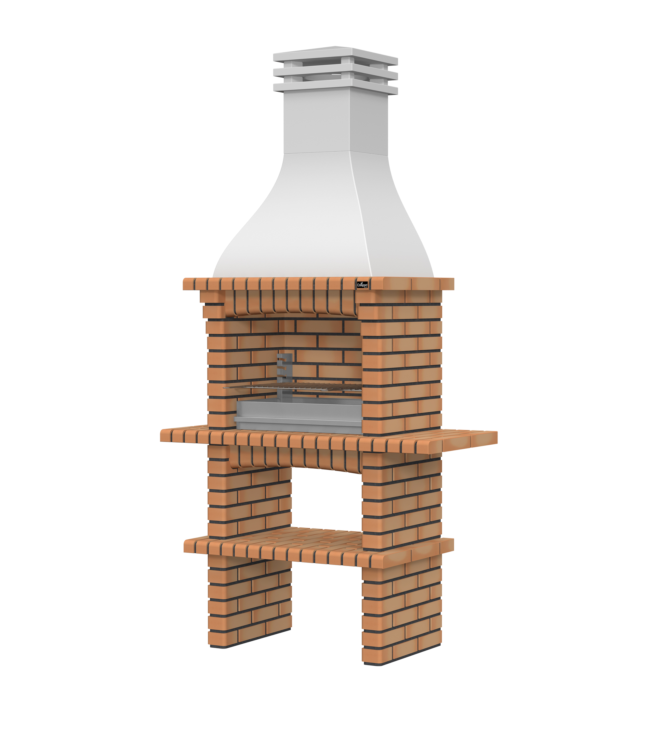 Chaminé em branco liso ou com pintura preta; zona de fogo em tijolo e cimento refractário