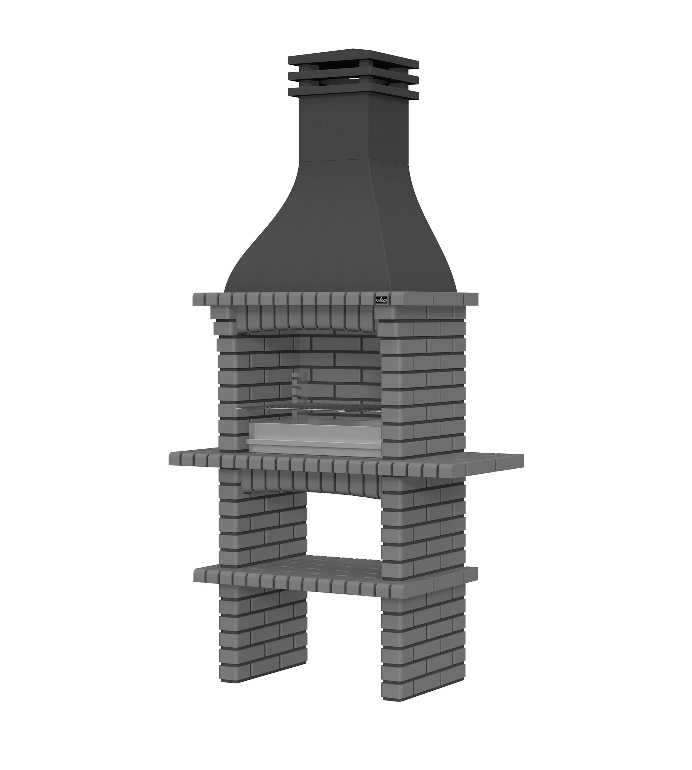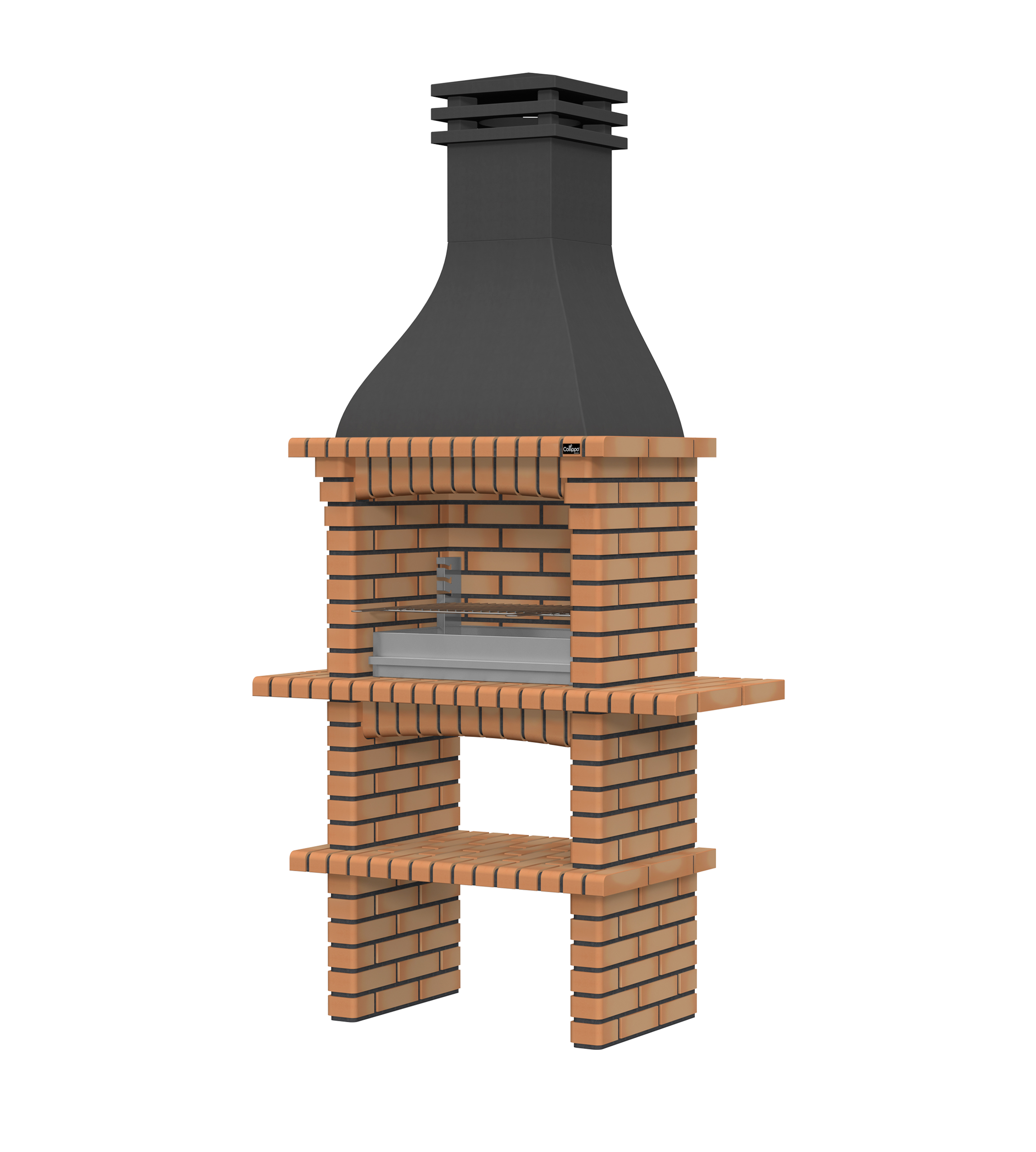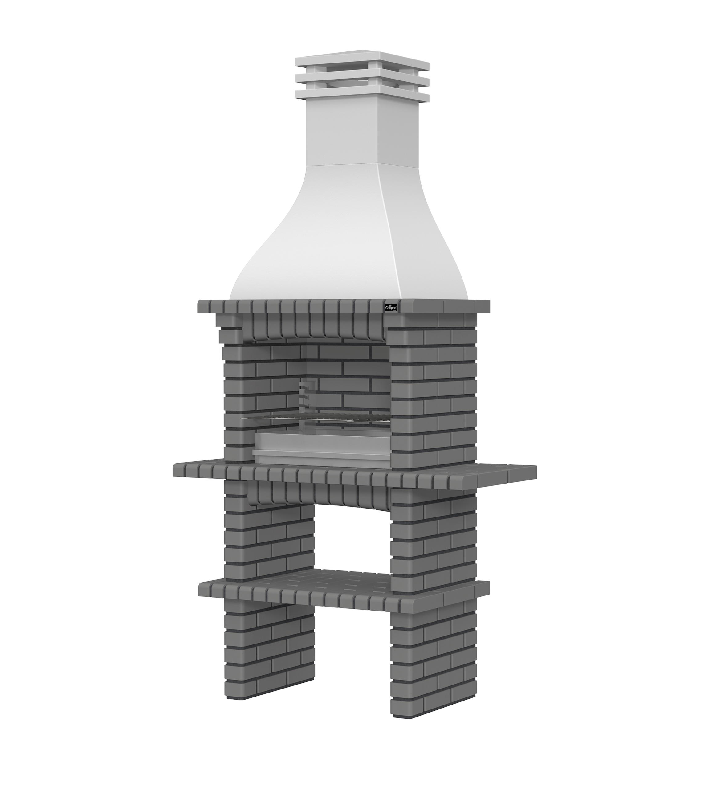 Chaminé em branco liso ou com pintura preta; zona de fogo em tijolo e cimento refractário