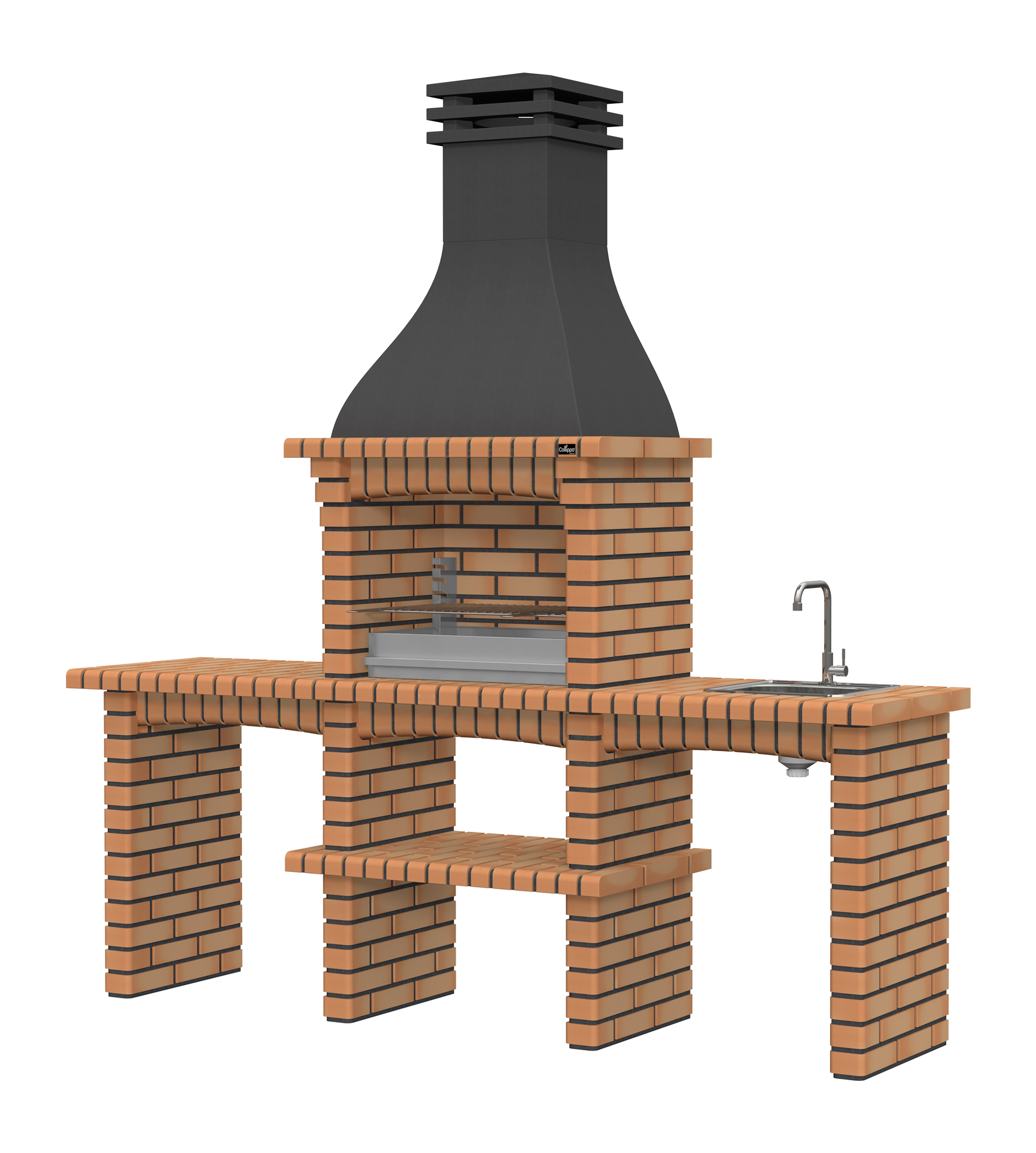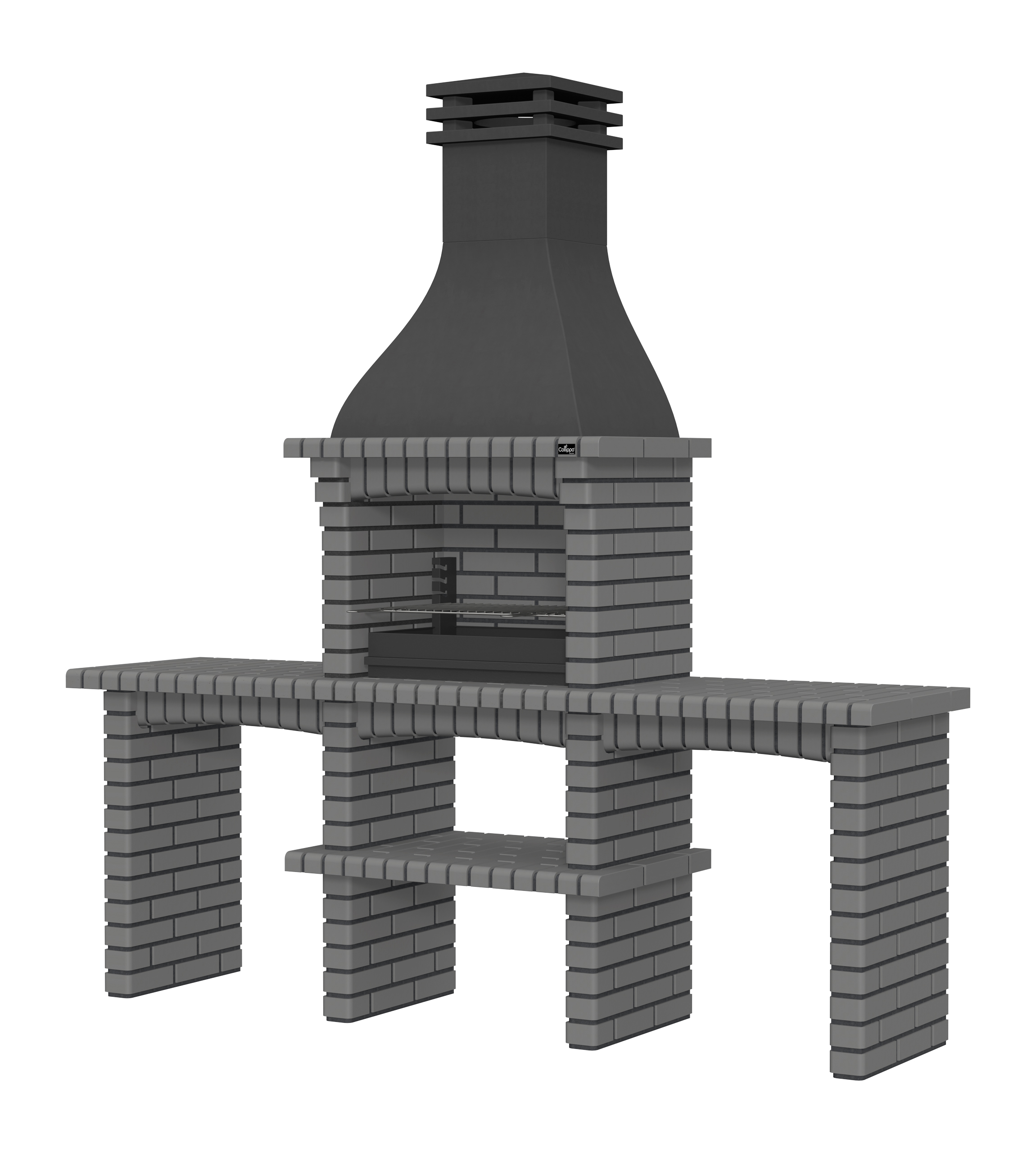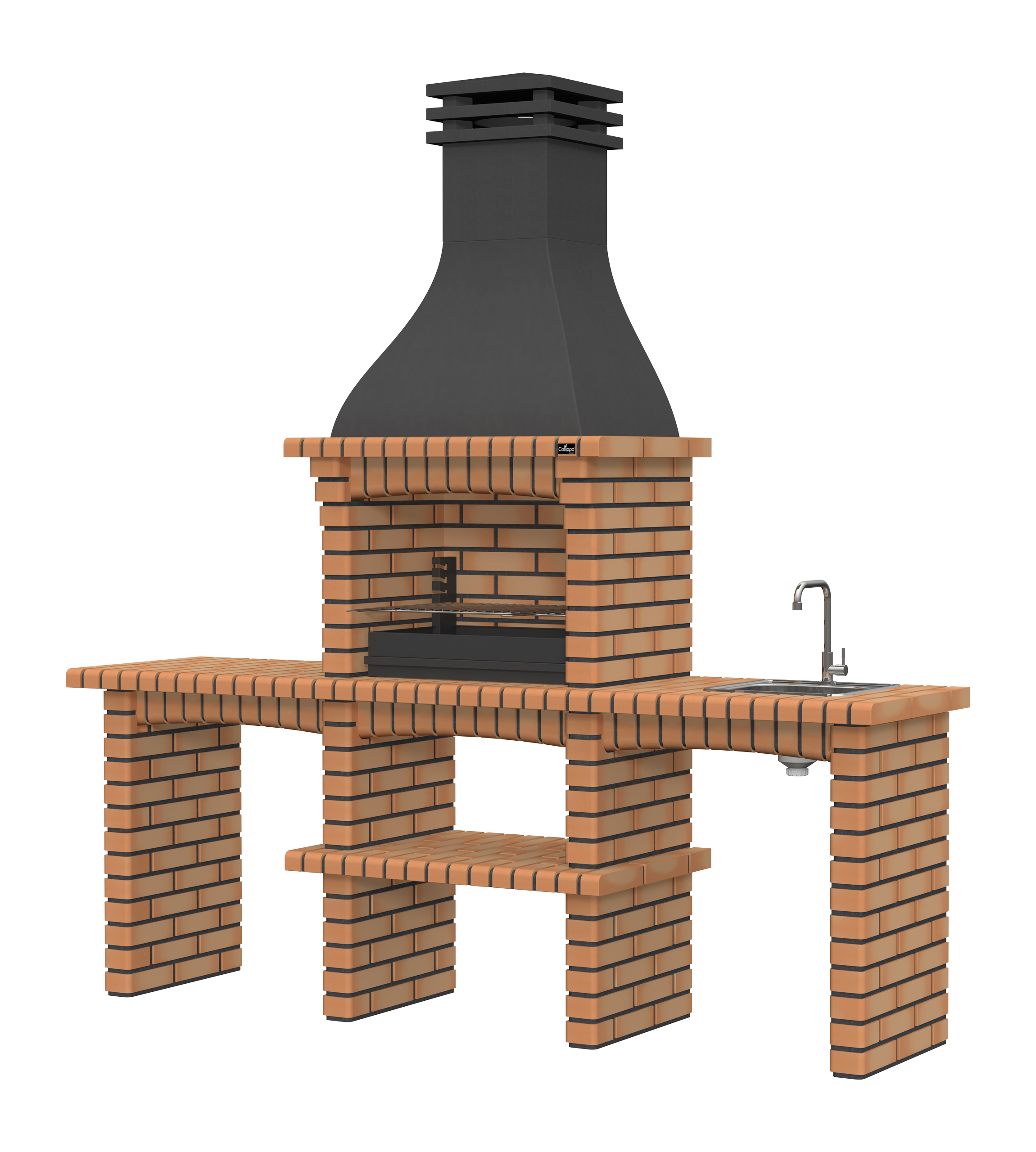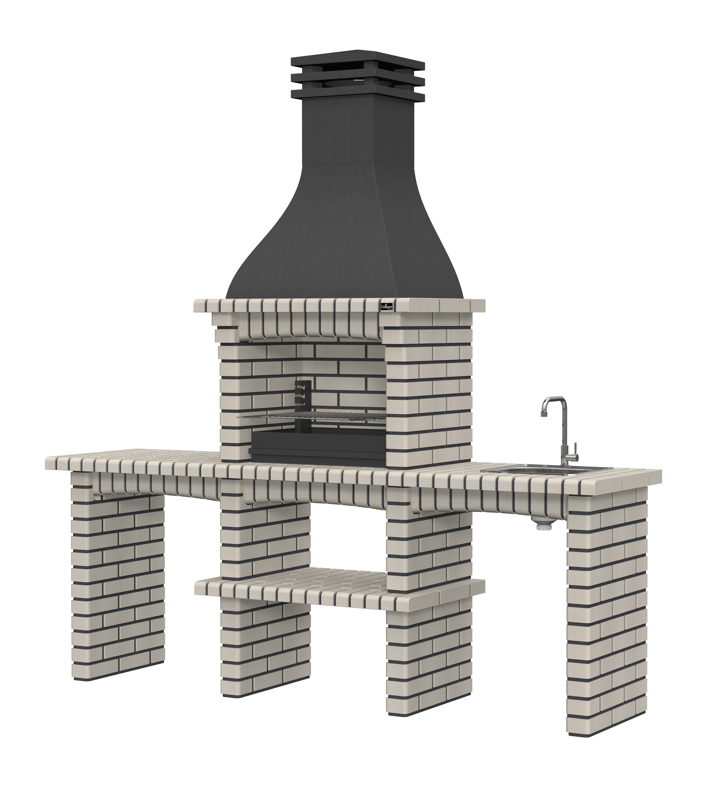 Chaminé em branco liso ou com pintura preta; zona de fogo em tijolo e cimento refractário