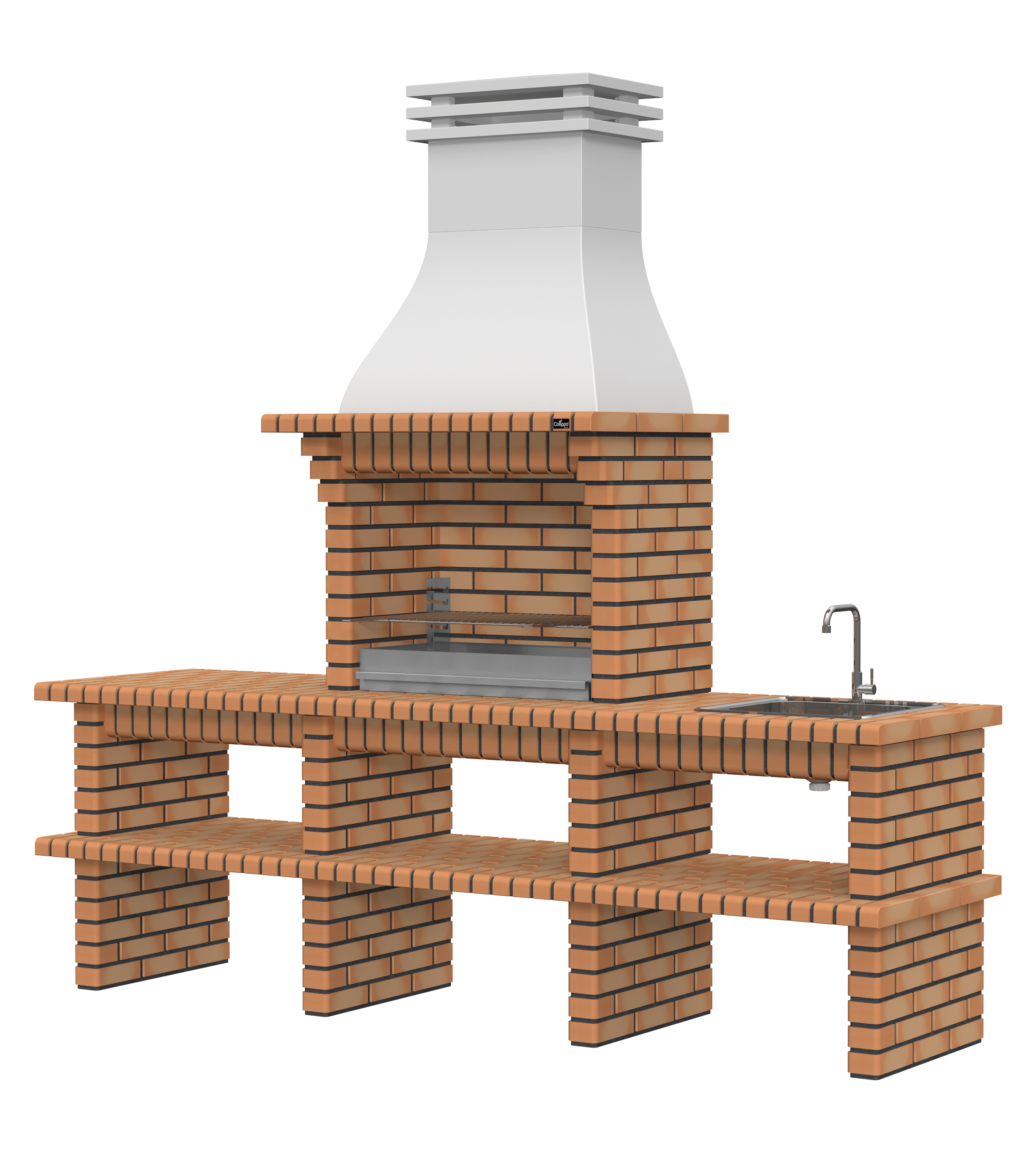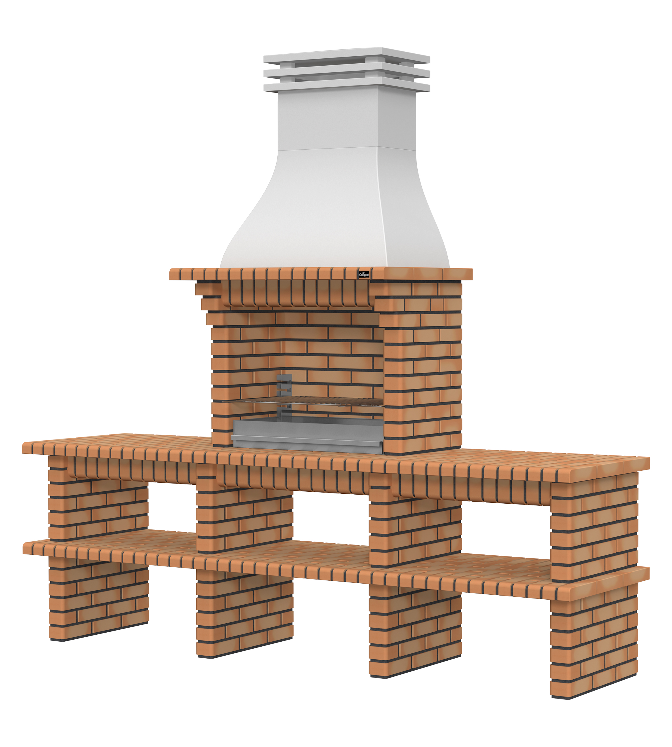 Micro betão cinzento liso; zona de fogo em tijolo e cimento refractário