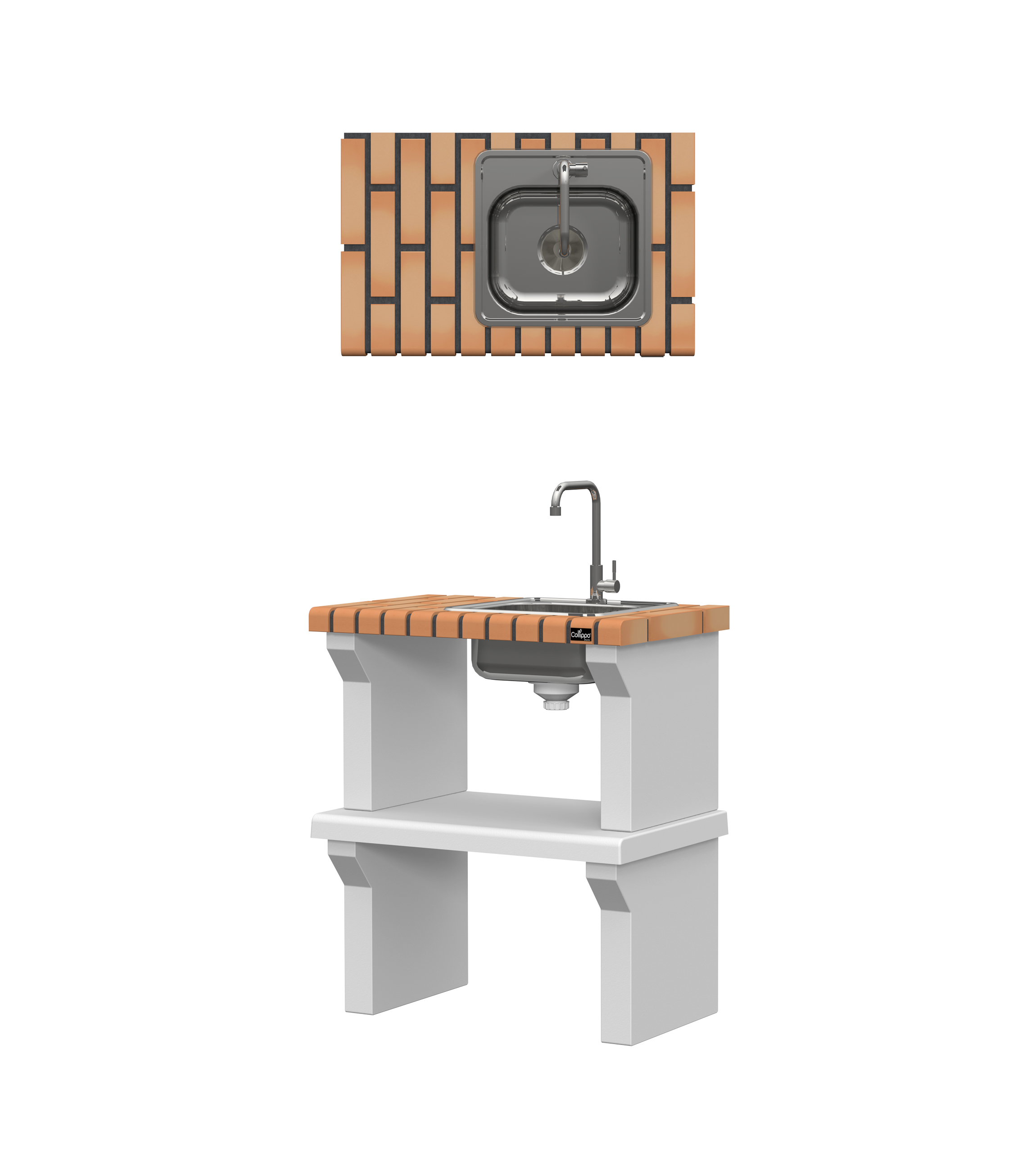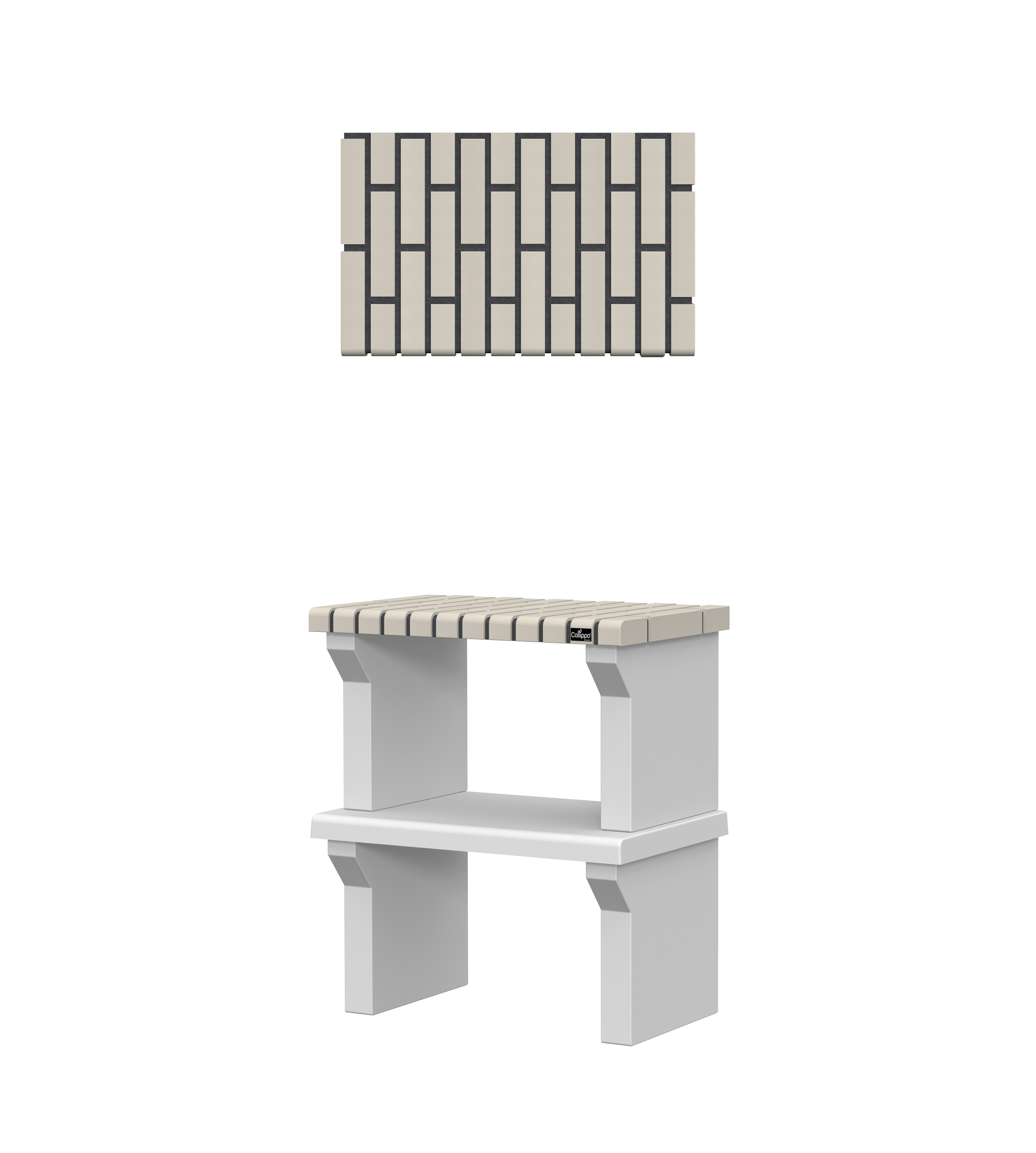 Micro betão cinzento liso e micro betão cinzento texturado; bancadas em tijolo